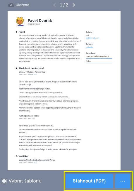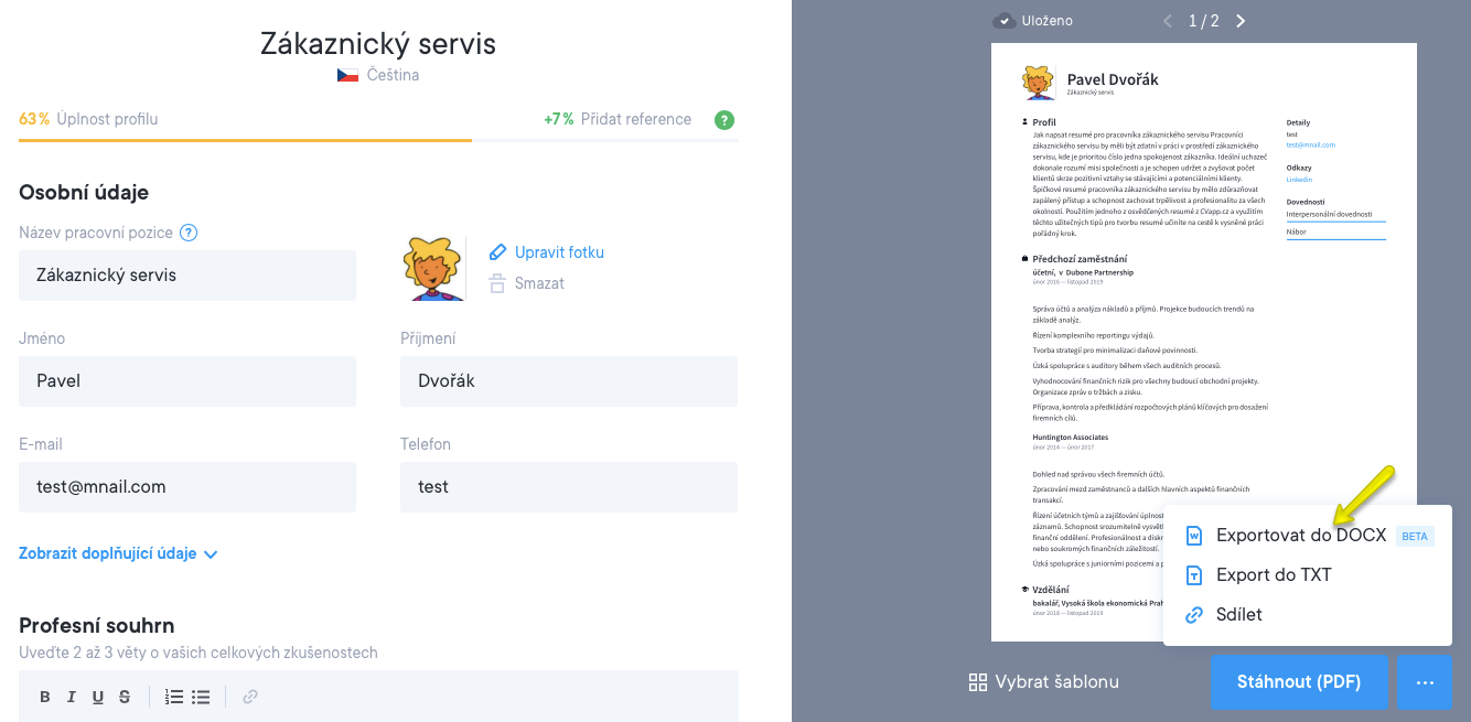 Jak si svůj životopis stáhnu ve formátu Word nebo PDF?