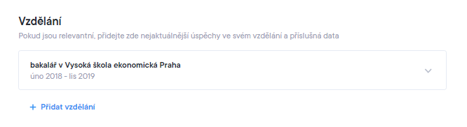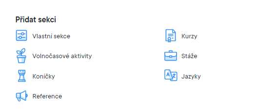 Ve spodní části editoru je několik volitelných částí jako kurzy, reference , jazyky, mimopracovní aktivity a stáže.